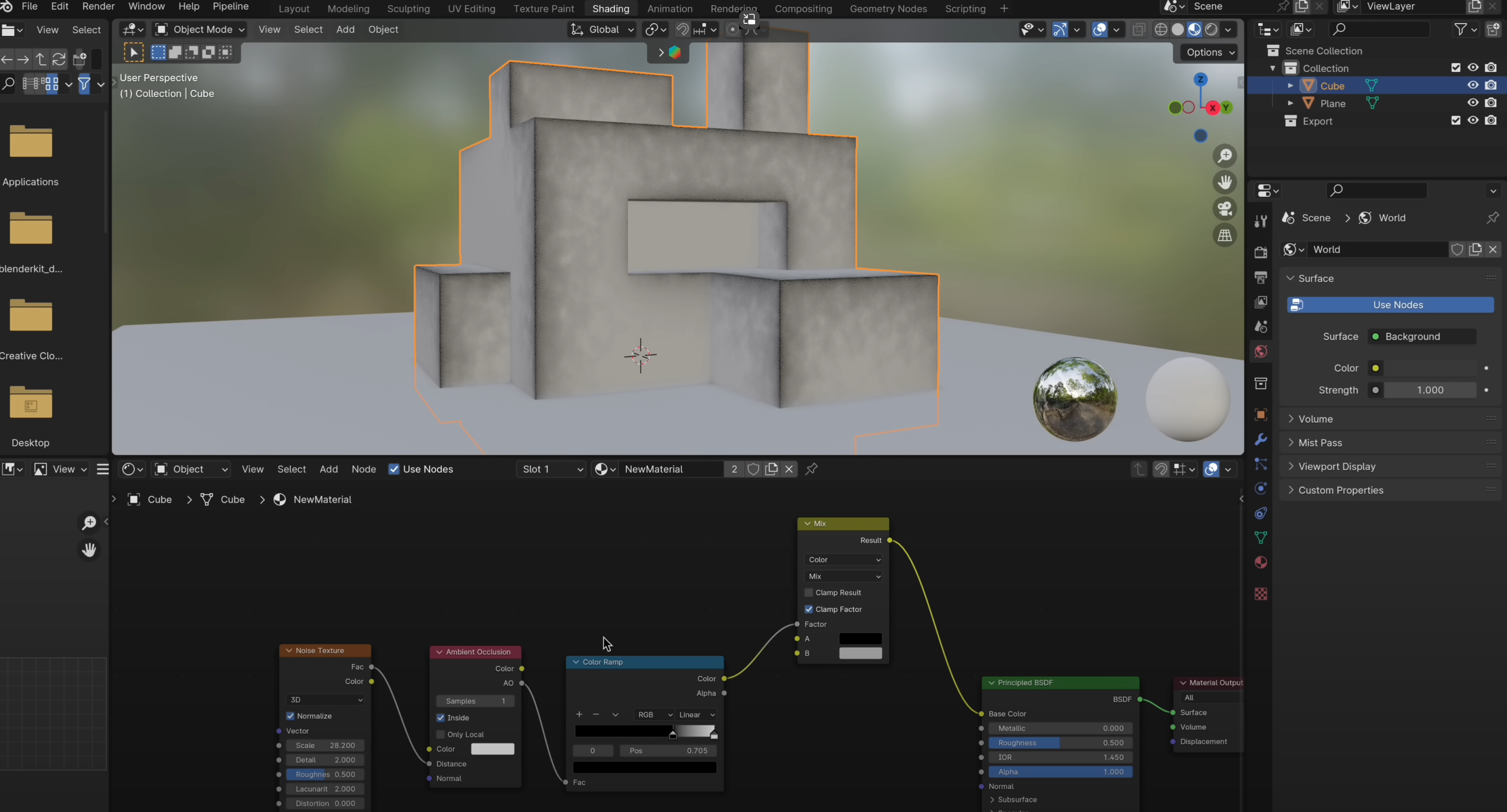 Ambient Occlusion노드 추가ColorRamp출력을 활용해 음영 강도를 미세조정Mix또는Multiply방식으로 Base Color에 결합