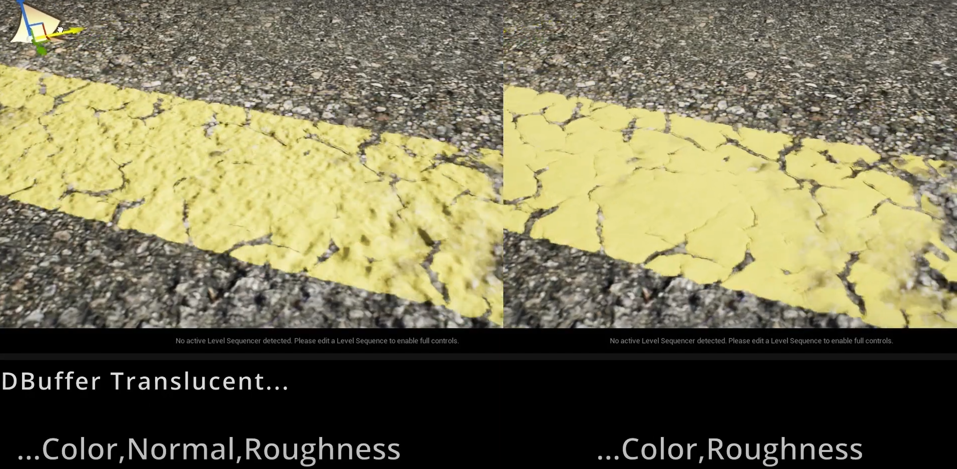 - DBuffer Decal์ ์ฌ์ฉํ๋ ค๋ฉด Early Z-pass๊ฐ ํ์ฑํ๋์ด ์์ด์ผ ํ๋ฉฐ, ์ด๋ ์กฐ๋ช ๊ณ์ฐ ์ ์ ์ ์ฉ๋๋๋ก ํ์ฌ ๋ผ์ดํ ์ ์ฌ๋ฐ๋ฅด๊ฒ ์ ์ฉ๋๋๋ก ํฉ๋๋ค.