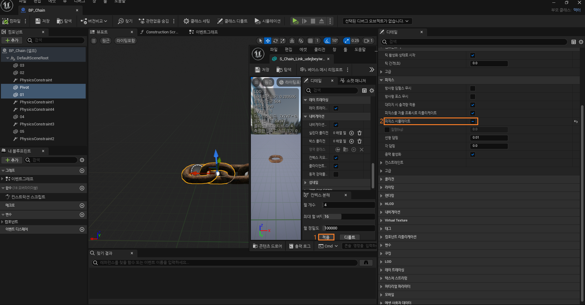- ์ฒด์ธ ๋งํฌ ๋ฉ์ 3-5๊ฐ (Simulate Physics: ON)