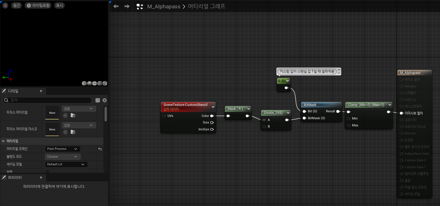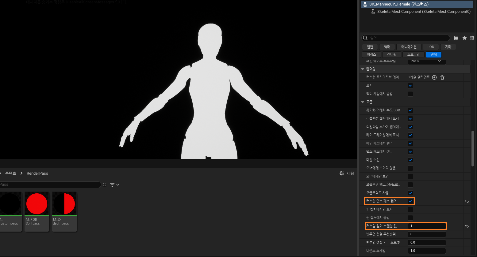 - Custom Depth Stencil Value ์ค์ ์ง์ - 0 or 1