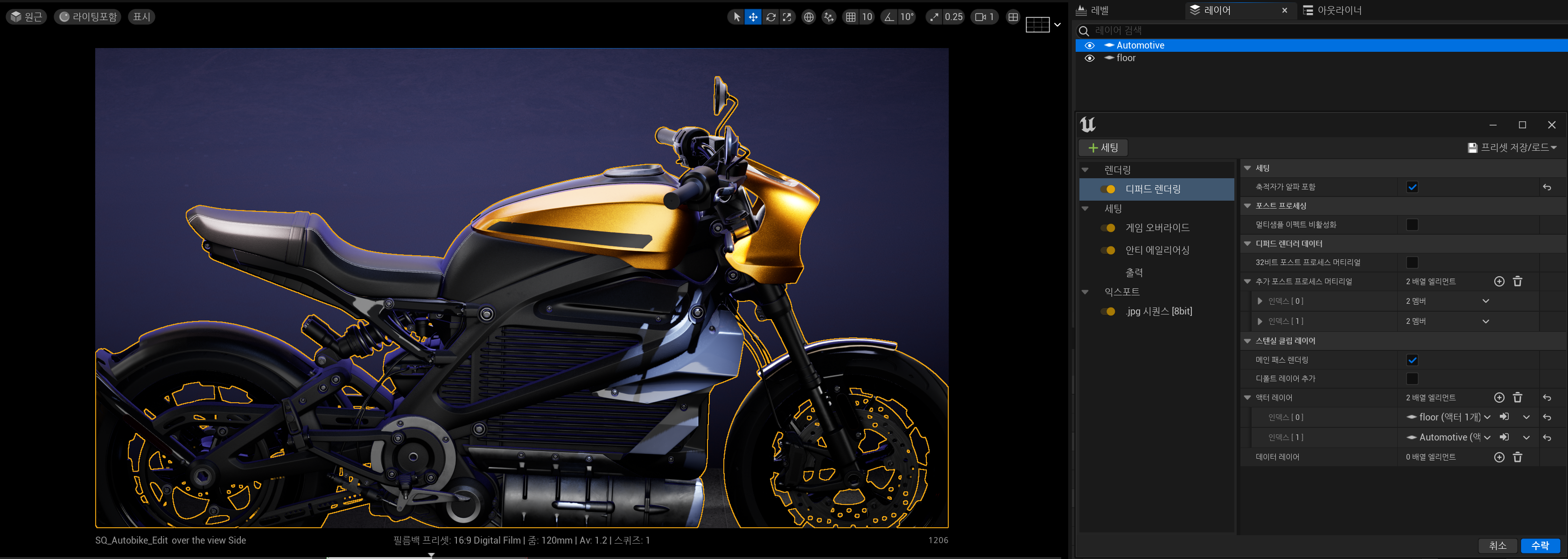 - Movie Render Queue์ Deferred Rendering ์ค์ ์์ ํด๋น ์ค๋ธ์ ํธ๋ง ๋ณ๋ ๋ ์ด์ด๋ก ๋ถ๋ฆฌ