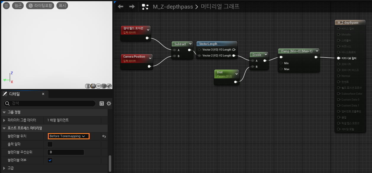 ์ปค์คํ ํจ์ค๋ฅผ ์ํ Post Process Material ๊ธฐ๋ณธ ์ค์
