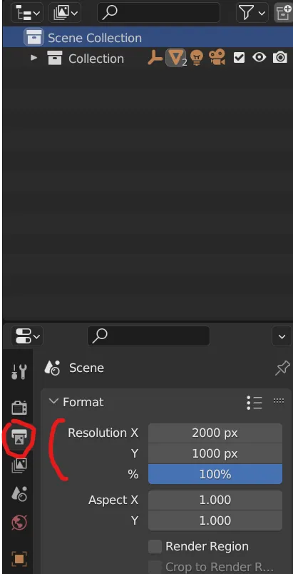 - Output Properties์์ย Resolution์ 2:1 ๋น์จ๋ก ์ค์ ํฉ๋๋ค.